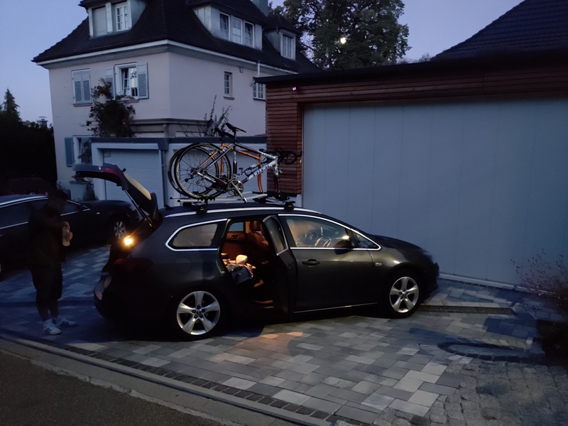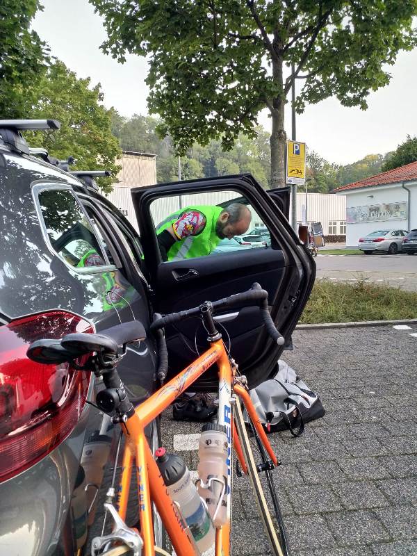 Nachdem am Vortag die Einschulung der kleinesten Königstochter mit einem Grillabend mit üppig Nudelsalat gefeiert wurde startet das Loire-Gloire-Rumpfteam früh morgends um 6 Uhr mit des captains Opel (nein kein Opel Kapitän). Nach gut einer Stunde konnte das vierrädrige Gefährt auf einem Supermarktparkplatz sicher abgestellt und die Räder gerüstet werden.