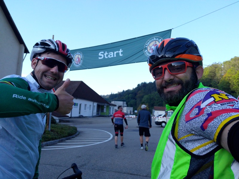 Die Akreditierung gestaltete sich etwas verzögert, zum einen ob des Andrangs, zum anderen da der König seine Sonnenbrille vergessen hat und noch ein Model mit automatischer Glastönung erworben werden musste. Diese sollte sich an diesem durchweg sonnigen Tag mit schattigen Teilstücken im Wald sehr bewähren und kann grundsätzlich empfohlen werden. Ausgestattet mit den Startnummern 1530 und 1531 erfolgte schließlich um vietel nach Acht der einsame Start unserer wackeren Radler.