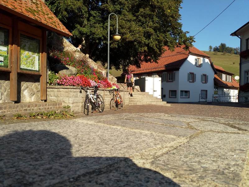 In Steinach verlies die Strecke das Kinzigtal. Stieg die Straße bis Welschensteinach noch relativ sanft an, so begann kurz nach der Kirche (an der Dank königlicher Ortskunde die Wasserflaschen nochmals gefüllt werden konnten) der erste große Berg des Tages. Auch hier machte sich die Ortskunde bezahlt und die doch knackige Steigung konte mit wohldosiertem Krafteinsatz zügig überwunden werden.
